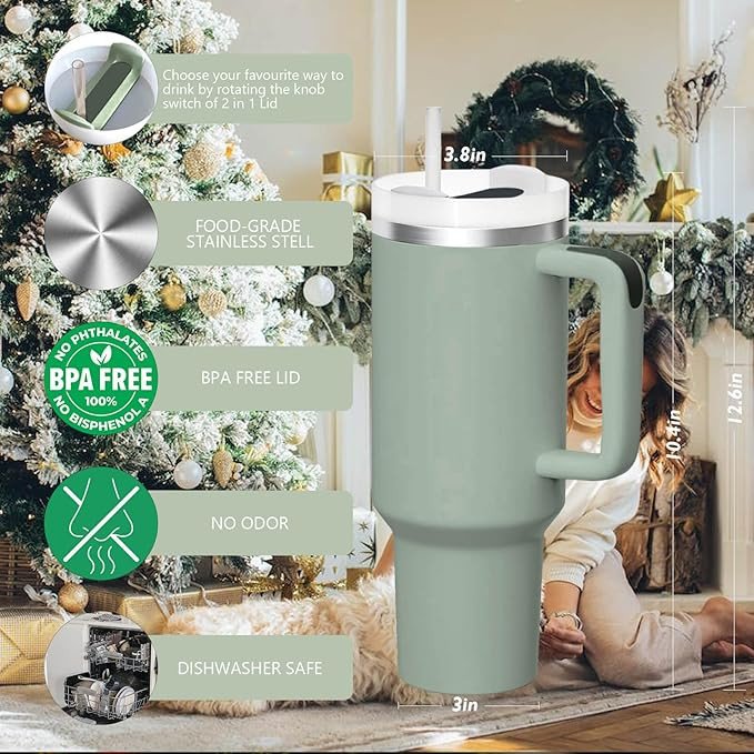 WATER CUP ALL DAY INSULATION: The 40 oz tumbler with handleand straw features triple layer, double wall vacuum insulation technology, keeping your drinks at the perfect temperature, all day long. water cup Cold for up to 34 hours, and hot up to 12 hours. Whether you’re at the office, on the road, or on a camping trip, and traveling,this durable tumbler is designed to keep your coffee hot Drinks or your water ice-cold all day long.
